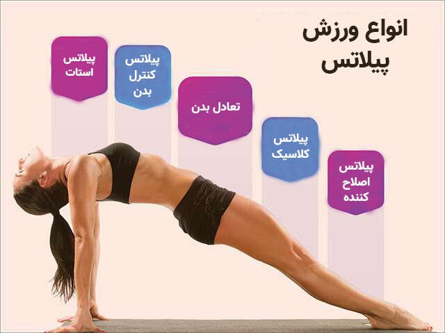- پیلاتس کنترل بدن: بسیاری از پزشکان، این نوع پیلاتس را برای افزایش و بهبود روند بازسازی در بیماران دارای جراحت تجویز میکنند. پیلاتس کنترل بدن، ۷ اصل دارد: آرامش، توازن، تنفس، تمرکز، هماهنگی، حرکتهای روان و قدرت.